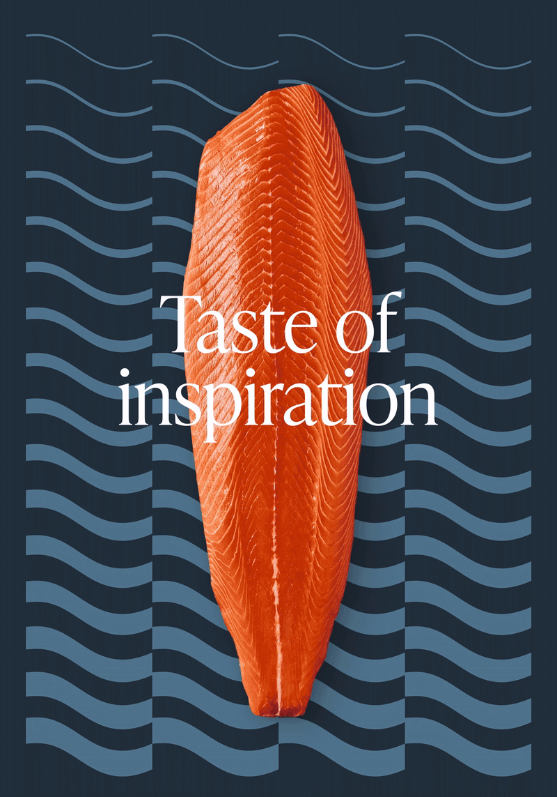 Vi bygde et fleksibelt grafisk system rundt bølgen, og skapte et helhetlig rammeverk for bilder og layout. Fargepaletten er justert fra dempede toner til livlige, selvsikre farger, som signaliserte en ny, dristig retning for merket. For å fullføre den visuelle omstillingen tok vi nye bilder, som fremhevet smak, menneskelig forbindelse og matglede – elementer som bringer Grieg Seafoods historie til liv på en dynamisk og tilgjengelig måte.
